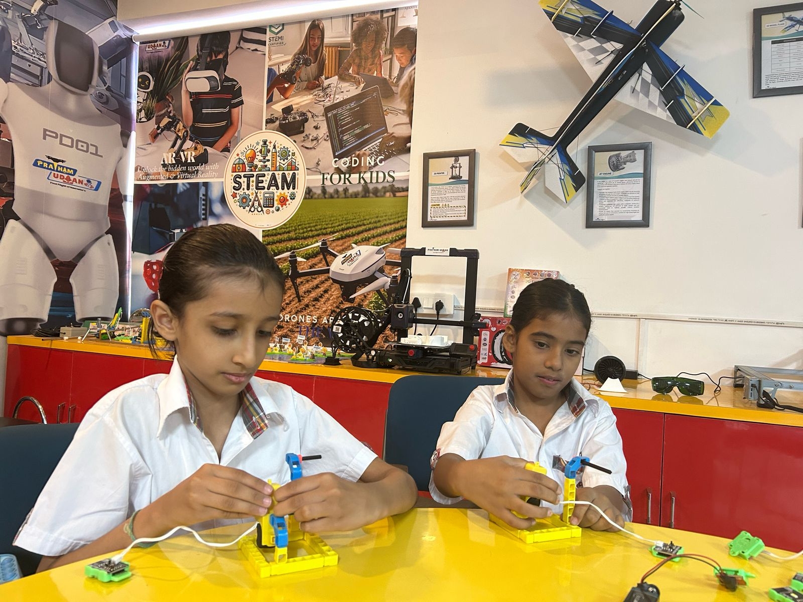Students learn to design, assemble, and program intelligentvrobots using microcontrollers and AI logic. This initiative logical reasoning, coding proficiency, and system